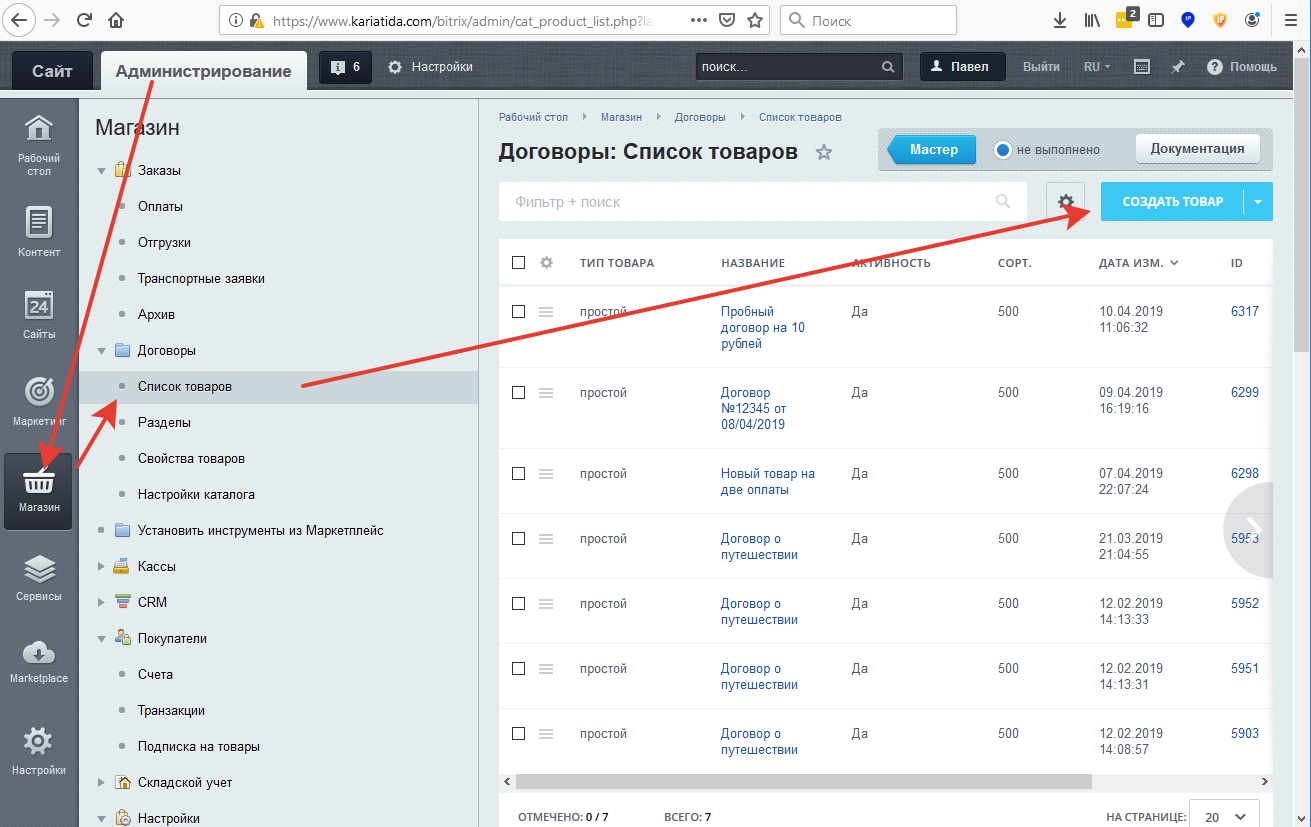 Создаем Товар (договор):