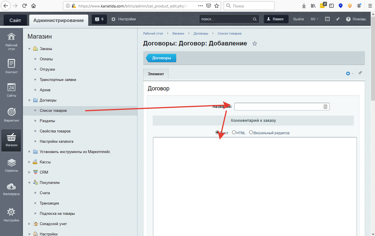 Для каждого пользователя создается свой договор. Т.к. в битриксе используется обозначение Товар, то и у нас далее будет использоваться слово Товар или Договор, что в нашем случае означает одно и то же.