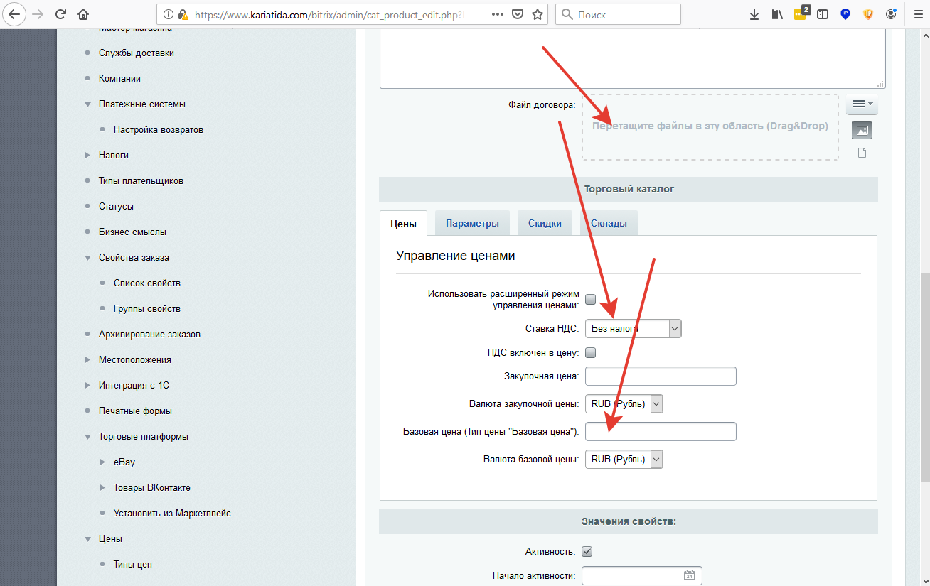 Добавляем параметры Товара: