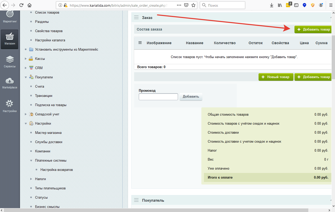 Система такая же, как в обычном интернет-магазине, но в нашем случае мы САМИ создаем для клиента покупку.