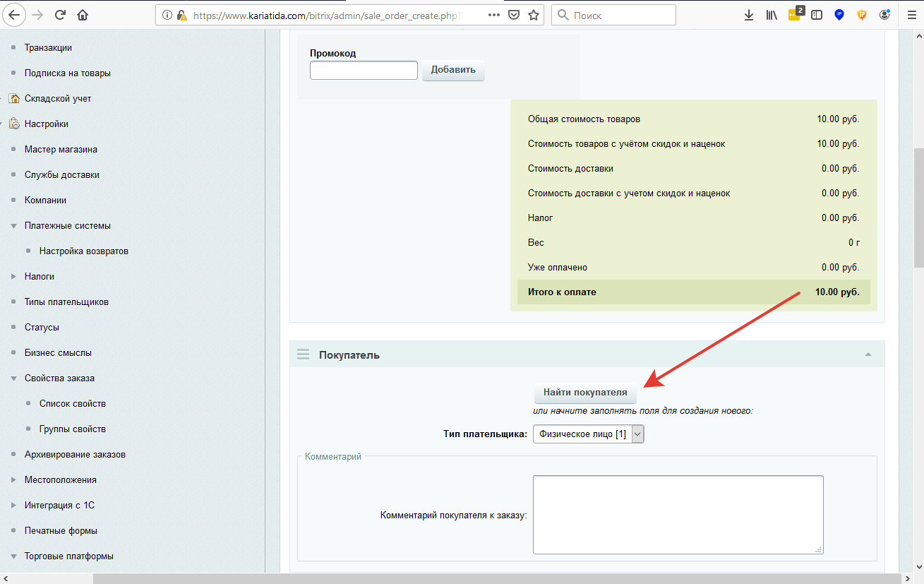 Опускаемся ниже по странице, до блока Покупатель.