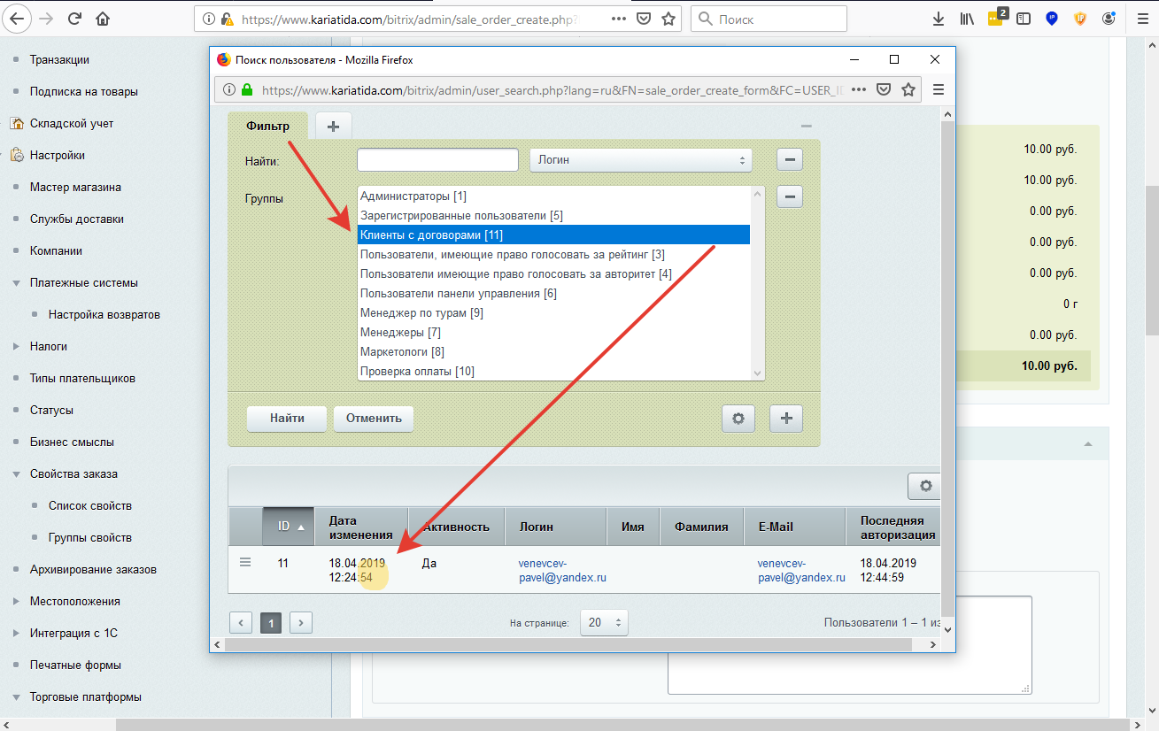 В отфильтрованном списке находим необходимого клиента и кликаем по нему два раза.