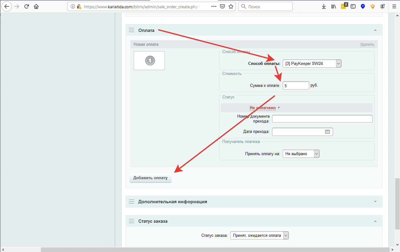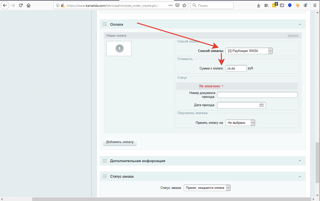 Ниже появляется блок Оплата.