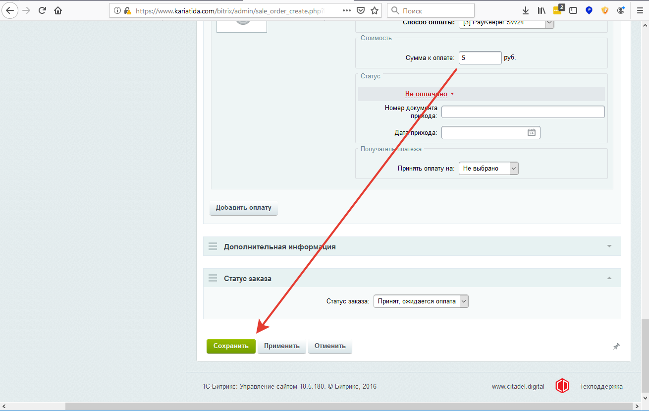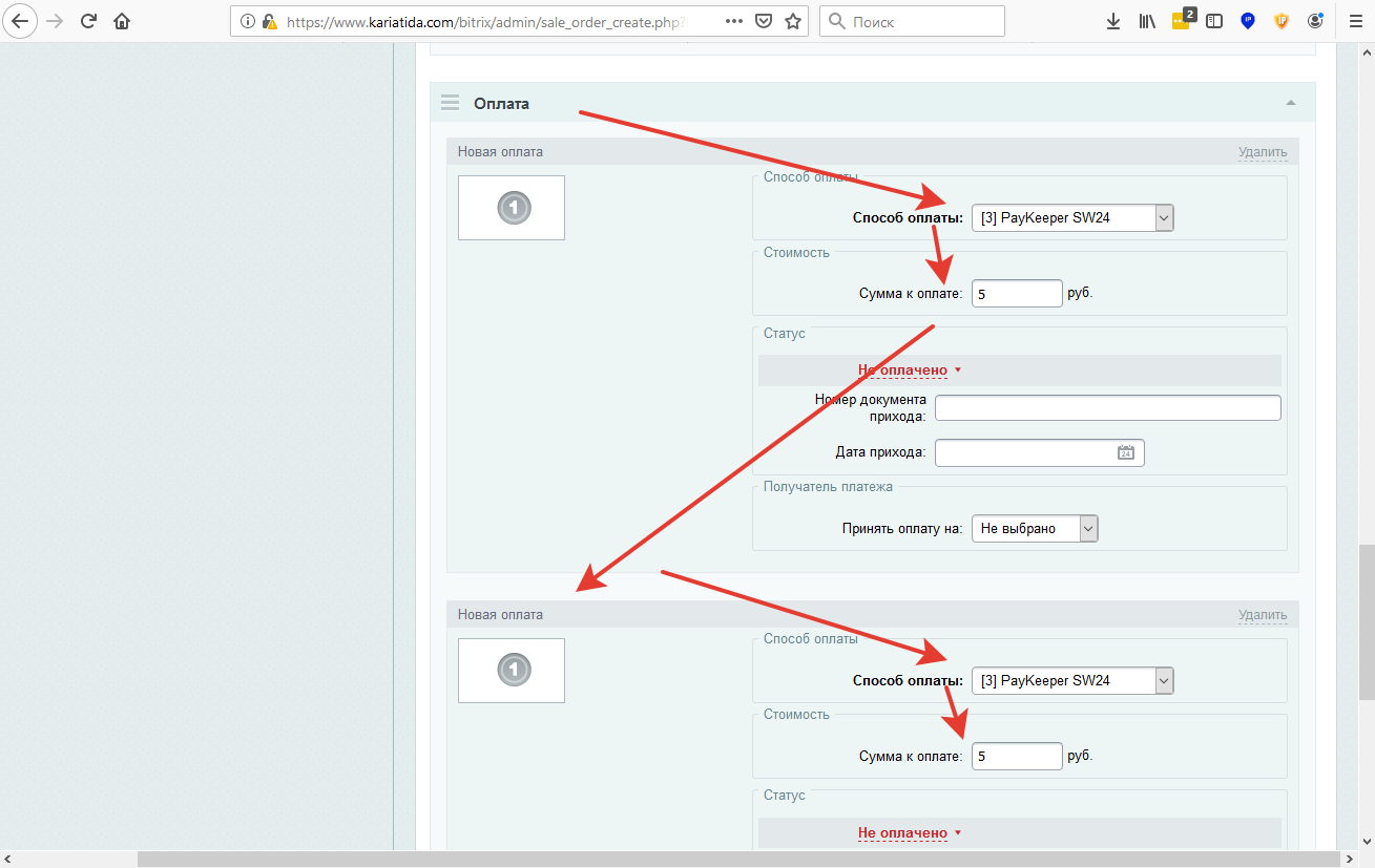 прописываем Сумму к оплате